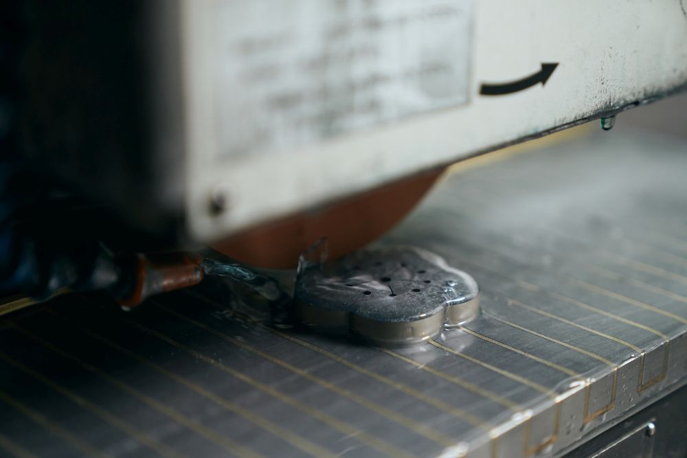 When the stainless steel is ready for processing, its pieces are cut using a brass wire with a thickness of 0.2mm in water.